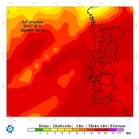 Mapa de previsão IUV para Portugal Continental - Hoje